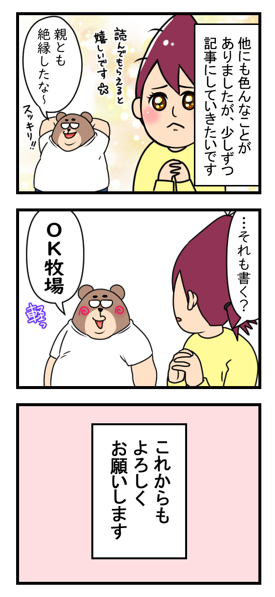 ブログを再開します 2021年12月12日 21:00 気が付けば1年近くブログの更新をしてませんでした。今後は日常のこと、不妊治療のこと、夫の腰の手術などなど、更新していなかった期間にあったことをどんどん描いていこうと思ってます。▼人気ブログランキングに登録中です▼押していただけるとランキングに反映されます(^^)よろしくお願い致します!絵日記ランキング スポンサードリンク 「その他」カテゴリの最新記事 < 前の記事次の記事 > コメント コメント一覧 (2) 1. まみれむねむこ 2021年12月15日 11:53 うわ~♪お久しぶりです! 再開嬉しい~!♪ 楽しみです! なにやら色々あったご様子ですね…( ゚Д゚) ちなみに私もブログ止まっちゃってます(笑) 再開しなきゃ~~(^^; 0 芋 がしました 2. 芋子 2021年12月15日 22:45 >>まみれむねむこ様 こんばんはー! お久しぶりです! 今年は色々ありましたね、でも過ぎてみると一瞬で… もう年末なのかとビックリしてしまいます。 ねむこさんのブログ、いつも読ませてもらってます(^ワ^) 1年近く更新せずにいた私に比べたら全然… 再開されたらまた伺いますね! 楽しみにしてます♪ 0 芋 がしました コメントフォーム 名前 コメント 記事の評価 リセット リセット 顔 星 情報を記憶 コメントを投稿する