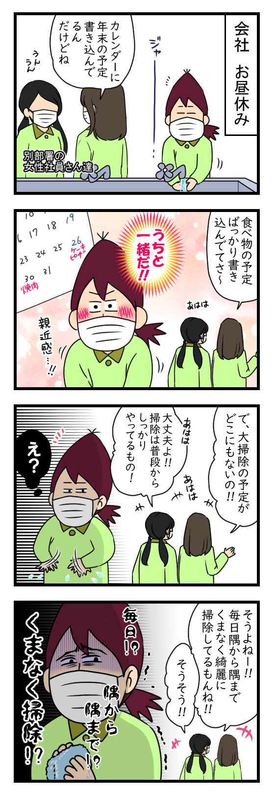 親近感なんて持っちゃいけなかった… 2020年12月21日 21:30 なにこの会話… 恐ろしい…絶対ウソだ…(決めつけ)普段から掃除を丁寧にされている皆様を尊敬します。我が家は…ちゃんと大掃除の予定をカレンダーに書き込もうと思いました。めんどくさい…▼過去記事も読んでみる?▼▼人気ブログランキングに登録中です▼押していただけるとランキングに反映されます(^^)よろしくお願い致します!絵日記ランキング スポンサードリンク 「日常」カテゴリの最新記事 < 前の記事次の記事 > コメント コメントフォーム 名前 コメント 記事の評価 リセット リセット 顔 星 情報を記憶 コメントを投稿する
